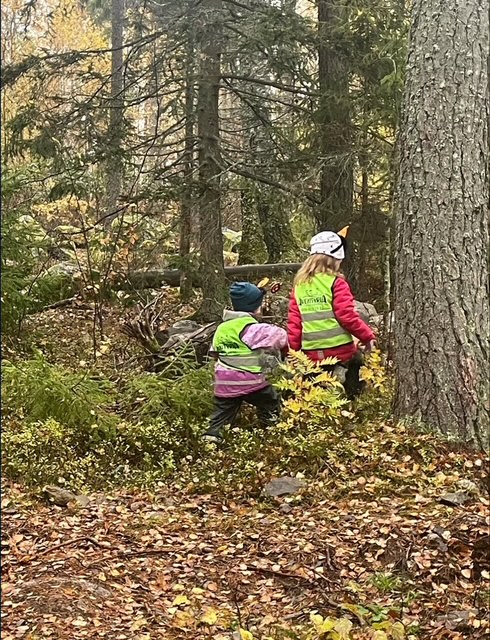 Nu när hösten är här så arbetar vi med det som skogen ger. Vi har gått långa skogspromenader, samlat på blad, lärt oss om svampar och gjort fina äppeltryck.